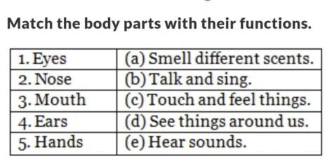 Match the body parts with their functions.