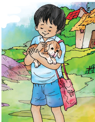 e) Badal hugged his puppy Moti and thanked him. (T)