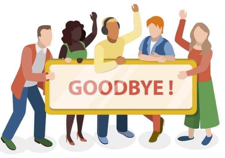 Explanation: “Goodbye” is the standard expression used when parting ways.