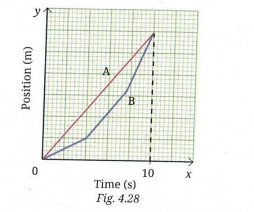 - Displacement of B in 10 s = 15 m