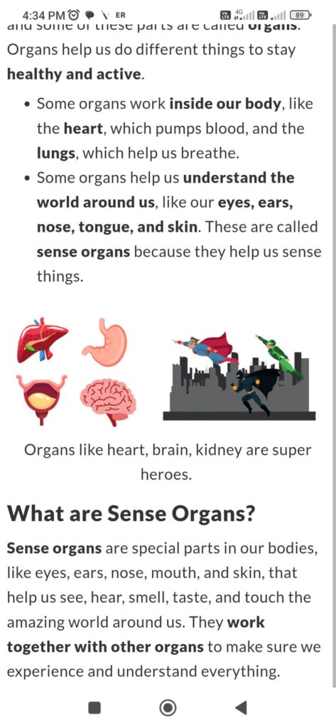 Our body is made up of many important parts, and some of these parts are called organs. Organs help us do different things to stay healthy and active.