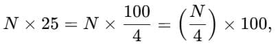 i.e. halve twice (divide by 4) and then append two zeros (×100).