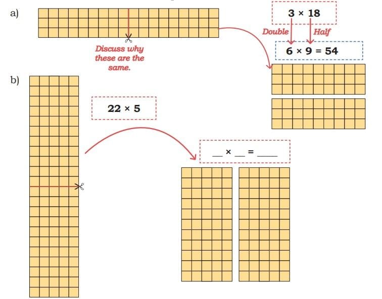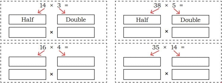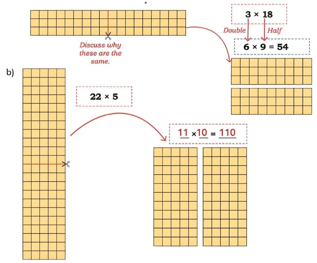 Ans: Halving one factor and doubling the other does not change the product because (a ÷ 2) × (b × 2) = a × b. This is useful to simplify calculations when one factor becomes easier to multiply after halving or doubling.