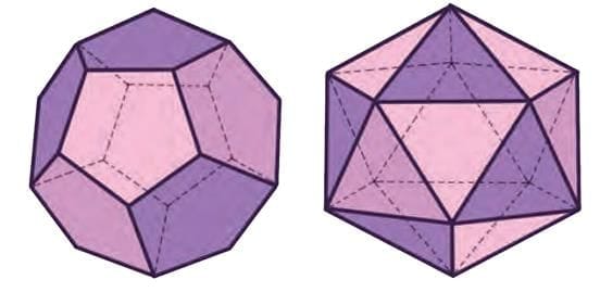 Q: What shapes do you see in an icosahedron and a dodecahedron?