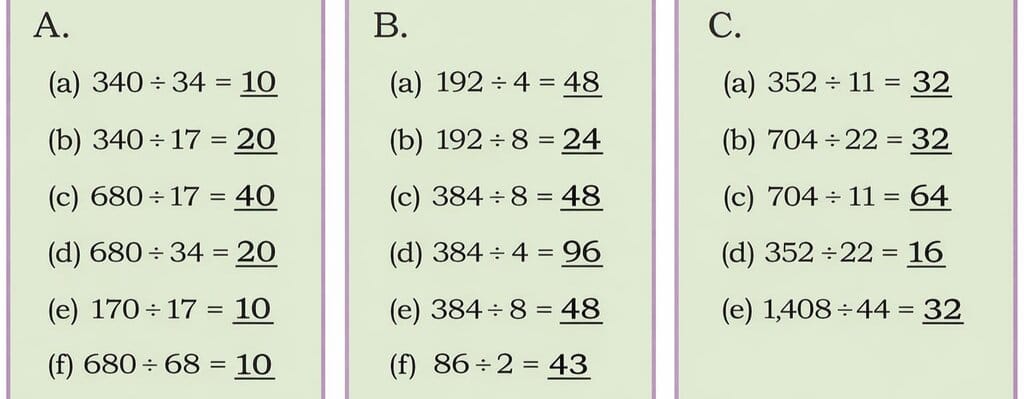 (d) 16 ÷ 2 = 8 and 72 ÷ 9 = 8