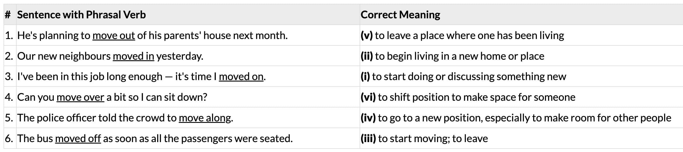 ‘Move’ also has different meanings. For example, to change position, to make progress, to take action, cause strong feelings.