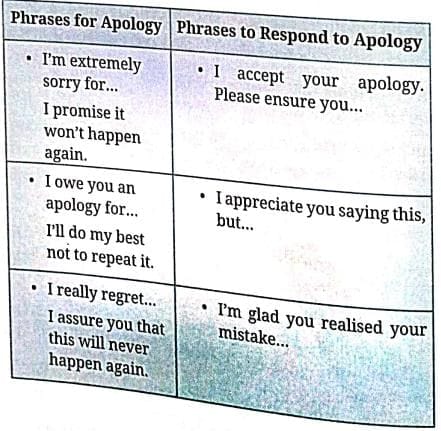 Ans: The speaker of the poem might have felt sorry for stepping on Mrs. Jones’s flower, and we should express regret when we make mistakes. Below are apologies and responses for the given situations using informal language.