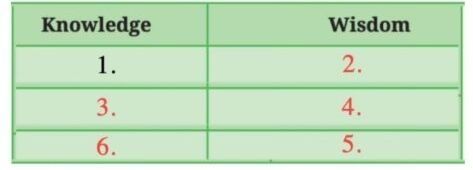 Work in pairs. Read the following situations and classify each one as either ‘knowledge’ or ‘wisdom’. One example has been done for you. 1. Riya’s understanding of plant care helped her grow a healthy vegetable garden in her backyard.