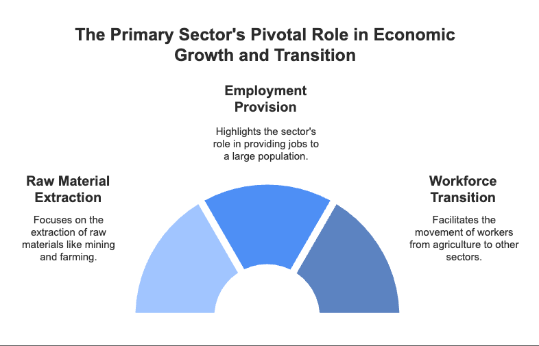- Each sector depends on the others to work. The primary sector gives raw materials, the secondary sector makes them into stuff we use, and the tertiary sector helps both of them by providing services. Together, they help a country’s economy grow and develop.