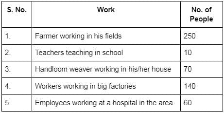Q4: Rakhi has done an economic survey of her area. The survey has revealed that people earn their livelihood by doing different jobs. The table prepared by Rakhi is given below. Study the table carefully and answer the Question that follows: (1 Mark)