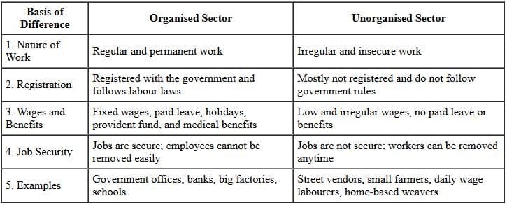 Ans: Difference between Organised and Unorganised Sector