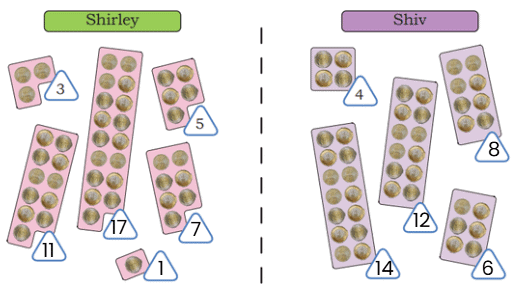 Look at the pictures below. Circle as many groups of 10 Ones or 10 Tens as possible. Write the final number against the following pictures.