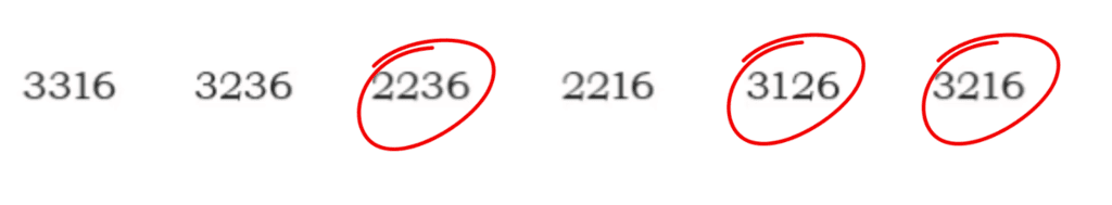 7432, 7423, 7342, 7324, 7243, 7234, 4732, 4723, 4372, 4327, 4273, 4237,