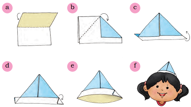 A. Paper Hat Look at the pictures and make a paper hat. Put on your hat and have fun! Ans: Do it yourself.Let us write