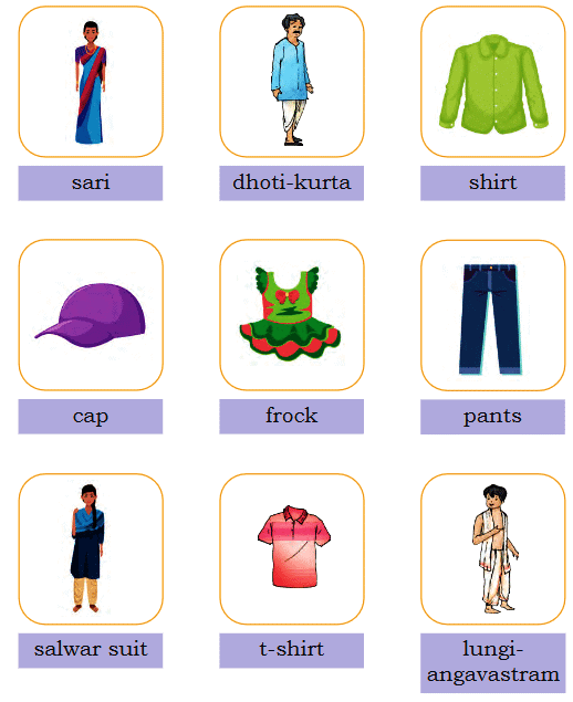 A: Look at the pictures. Say the names of the clothes we wear. Ans: Do it yourself.Let us do Page No. 112