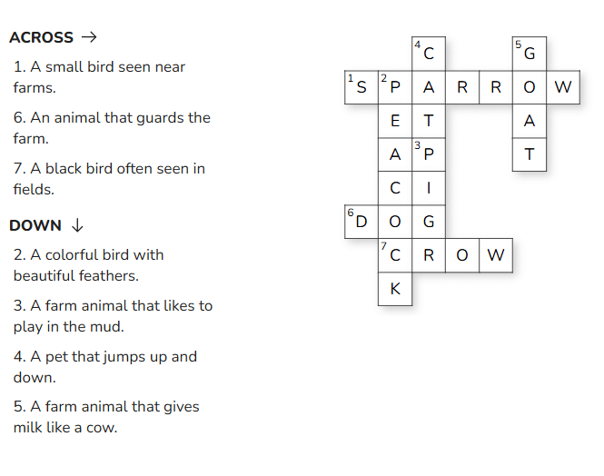 (Fill in the boxes using the clues given below to complete the crossword.)