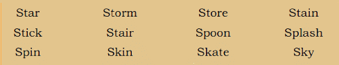A. Fill in the blanks by forming words using ‘sk’, ‘sw’, ‘sp’, and ‘st’.(One is do for you)