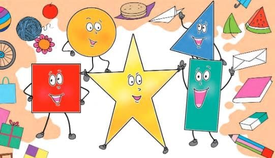 Triangle: (Forms a triangle with fingers) “I am the best! With my three sides, I help in drawing mountains and appear in many yummy snacks.”