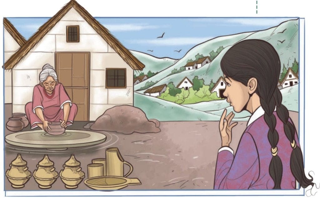 Sentila has always dreamed of becoming a pot maker like her mother Arenla and grandmother. But Arenla wants her to learn weaving because pot making involves back-breaking work — digging clay 16 km away, pounding it, carrying heavy loads uphill, and earning only a pittance. She tells Sentila, “Weaving is not messy… and the return is handsome.”