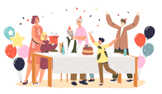 Birthday with Family3. – a. A joint family is a big family. It includes parents, grandparents, uncles, aunts, brothers, sisters, and cousins—all living together. 4. – e. A nuclear family is a small family. It has parents and their children living together in one house. 5. – b. When a baby is born, the family welcomes them with love. As children grow, they learn good values and how to behave from their parents.