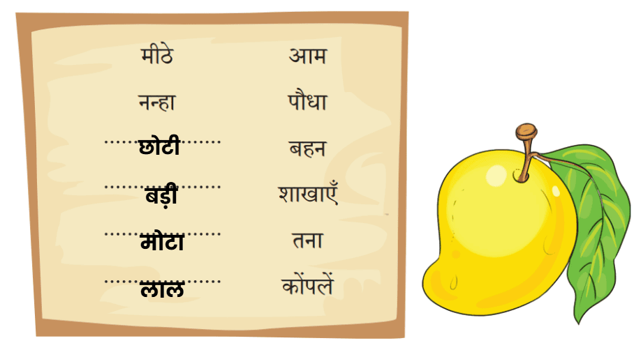 1. नीचे कहानी से जुड़े कुछ चित्र और बातें हैं। उनका आपस में मिलान कीजिए-