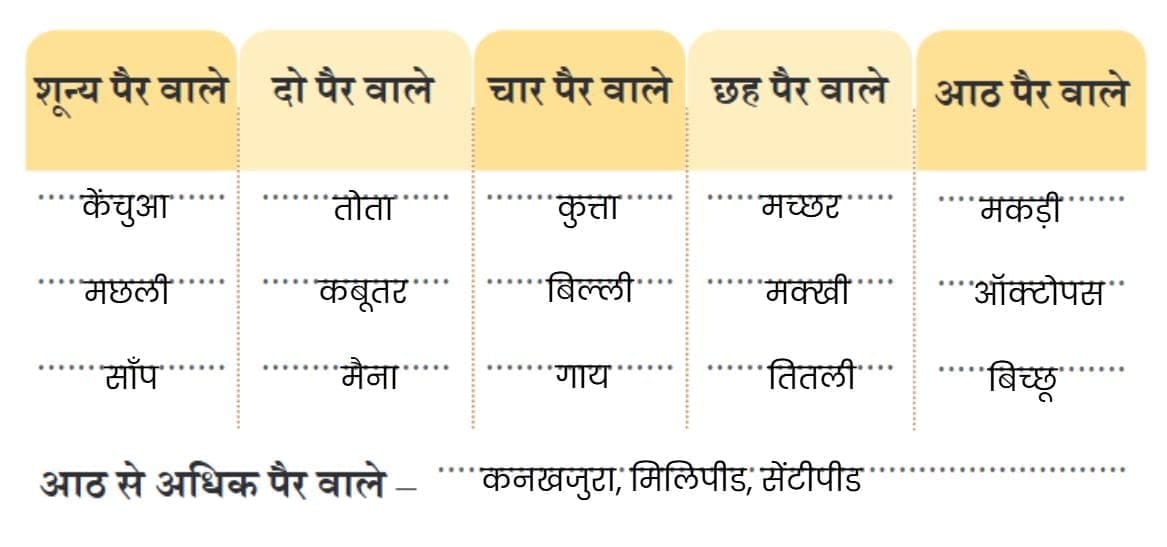 इस कहानी में मगरमच्छ, गीदड़ और कछुए जैसे पात्र आपने देखे हैं। मगरमच्छ जल और थल दोनों पर ही रहता है जबकि गीदड़ केवल थल पर रहता है। आप इस तरह के और प्राणियों के नाम पता करके नीचे दी गई तालिका में लिखिए- उत्तर: