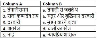 (नीचे दिए Column A को Column B के सही विकल्प से मिलाइए।)