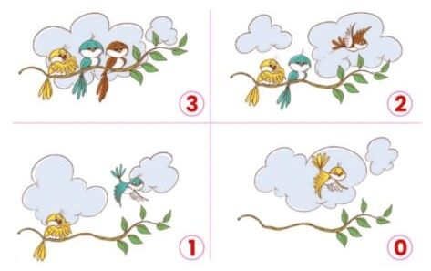 - Four little dicky birds sitting on a tree, one flew away and then they were