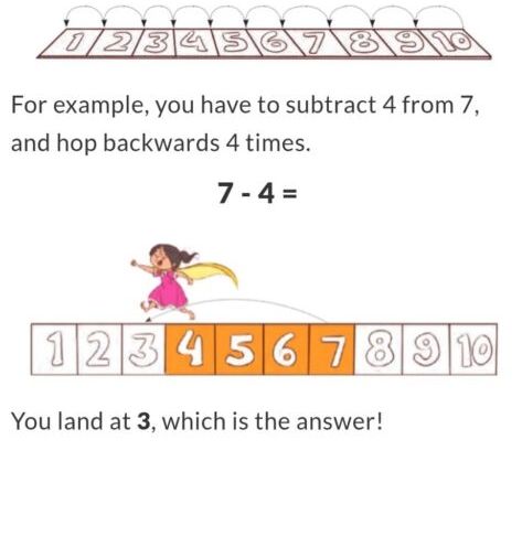 - For example, if you start at 5 and subtract 2, take two steps back: 4, 3.
