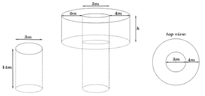 Volume of figure = Volume of small cylinder + volume of big cylinder