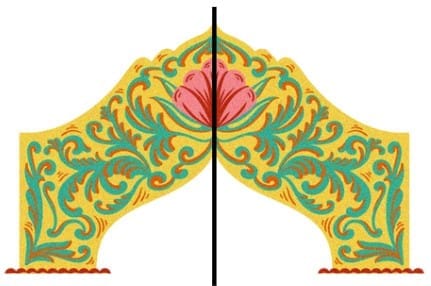 Q4: A design is symmetrical along a vertical line. Which part of the design must be repeated on the other side to complete it?