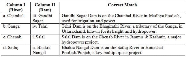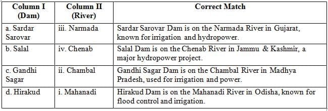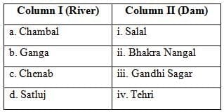 (a) The major dam located on the Chenab River is the Salal Dam in Jammu and Kashmir.