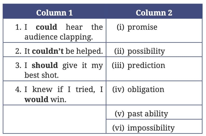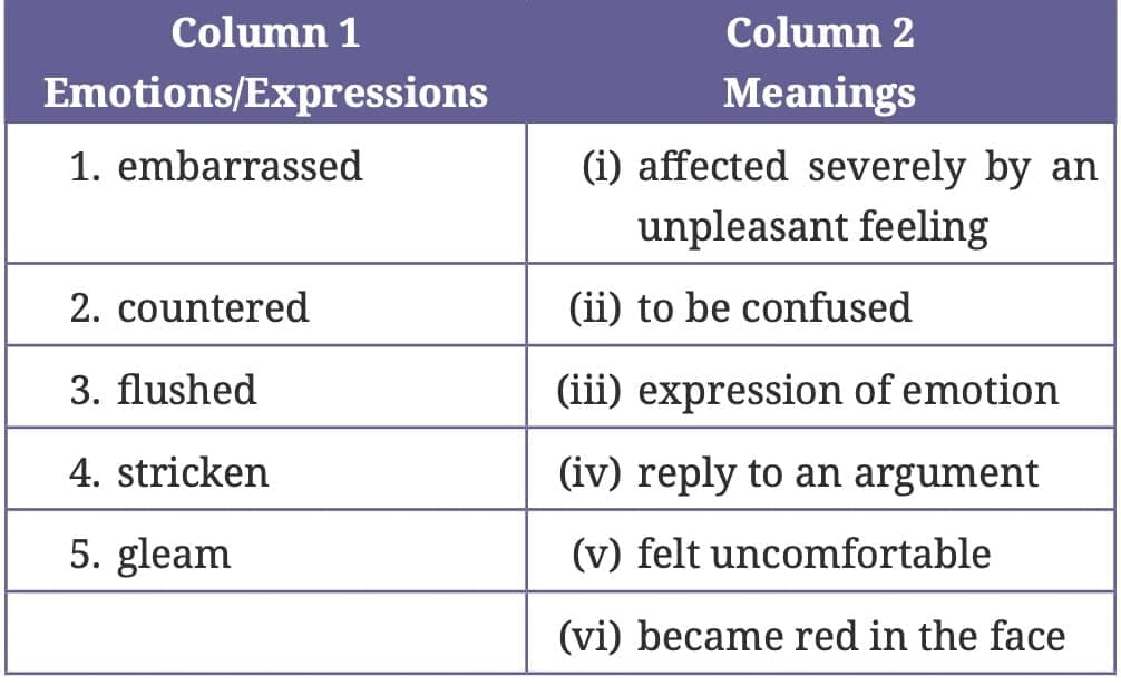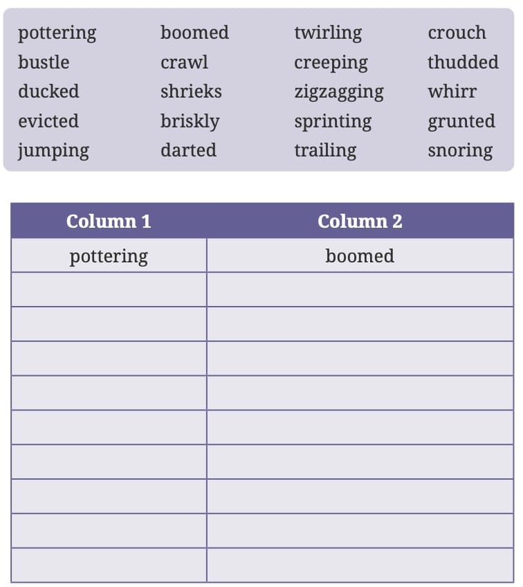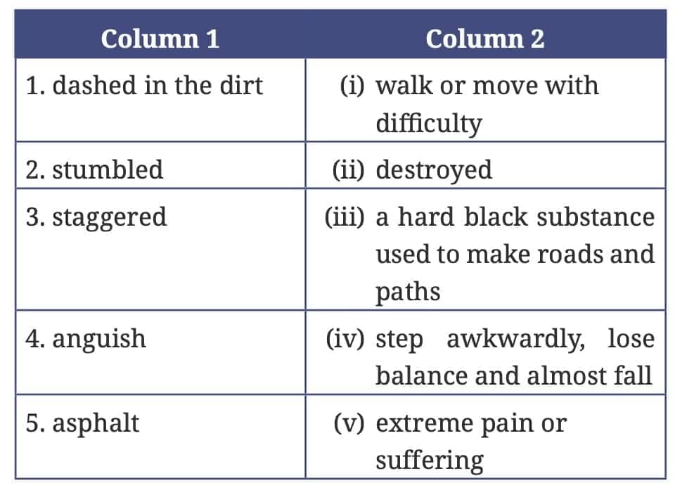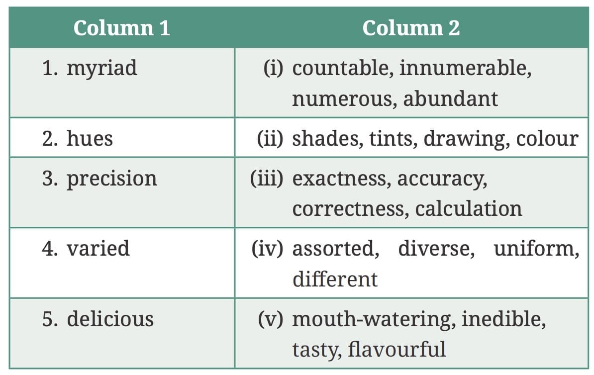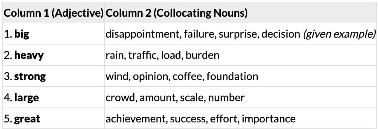 II. Complete the table given below by writing four nouns in Column 2 that collocate with the adjectives in Column 1.