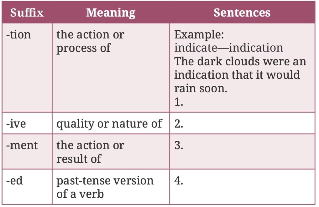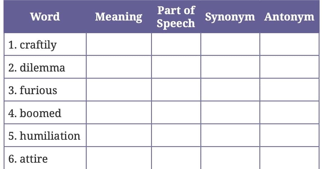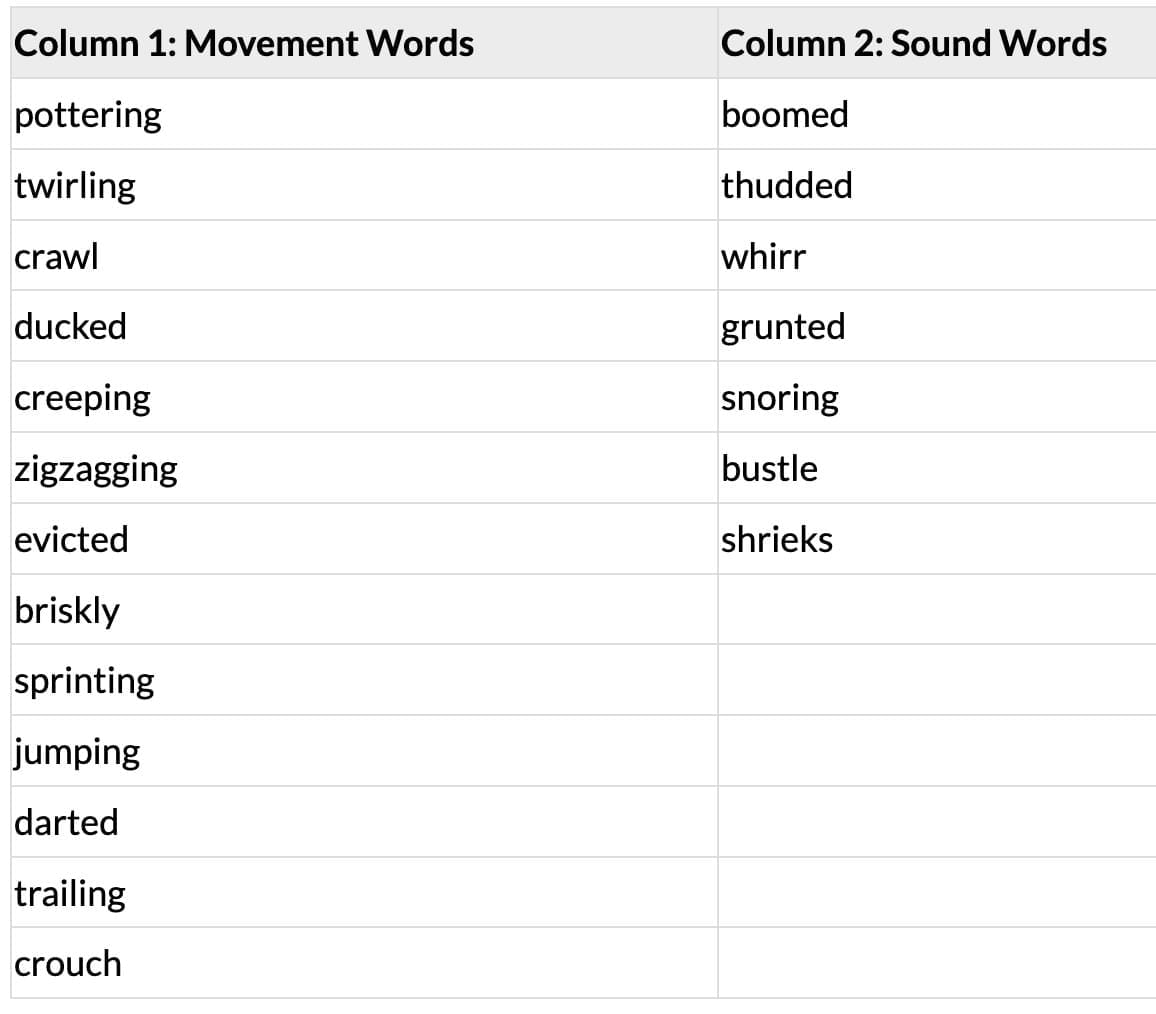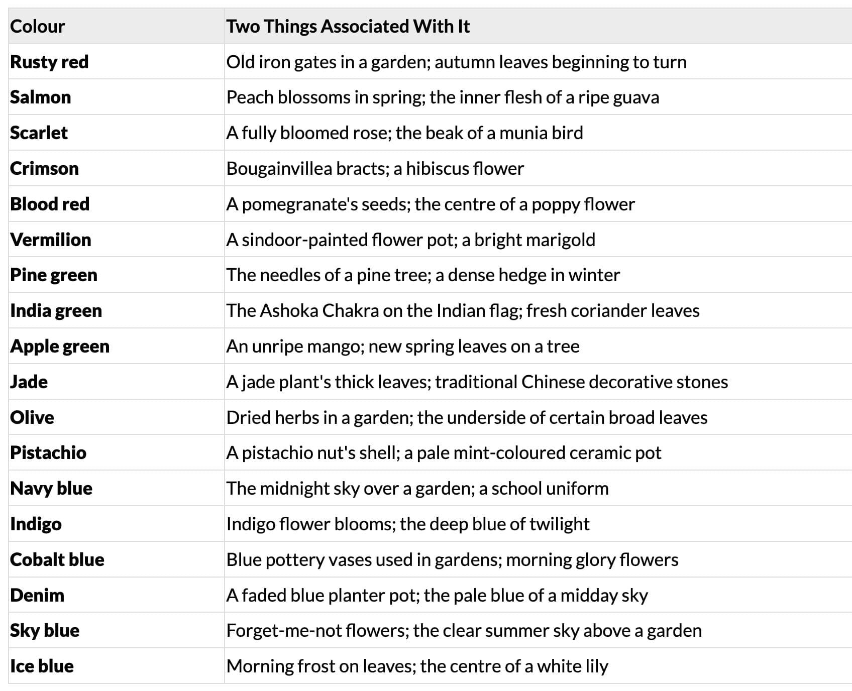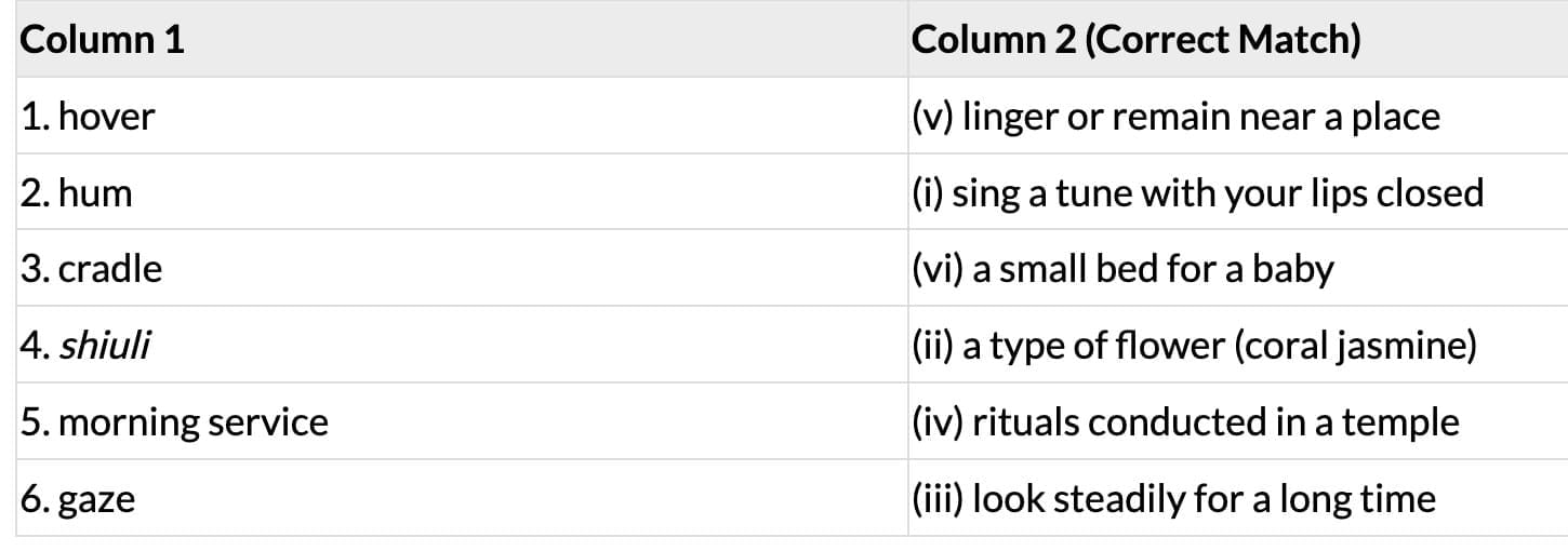 II. Complete the table given below by writing four nouns in Column 2 that collocate with the adjectives in Column 1.