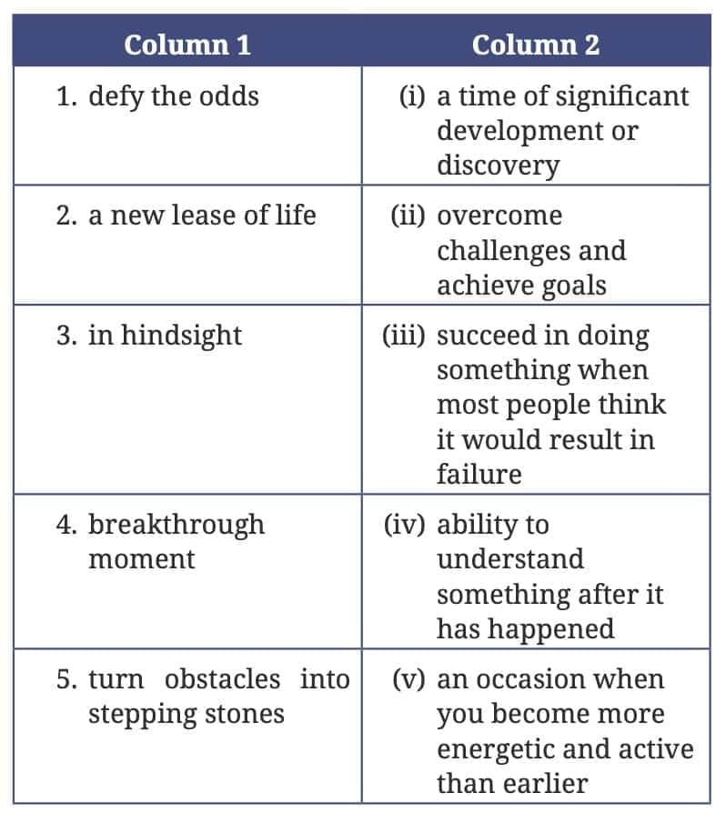 I. Work in pairs. Match the words and phrases in Column 1 with their meanings in Column 2.