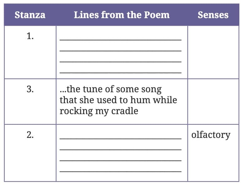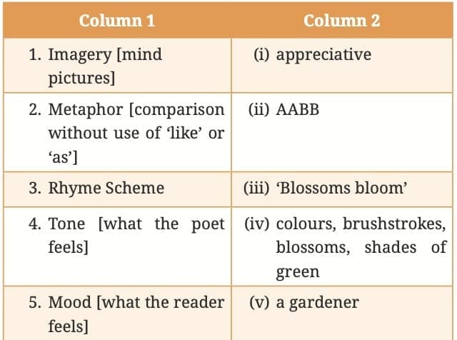 II. Identify the gist of each stanza. Write the number of the stanza in the boxes given.