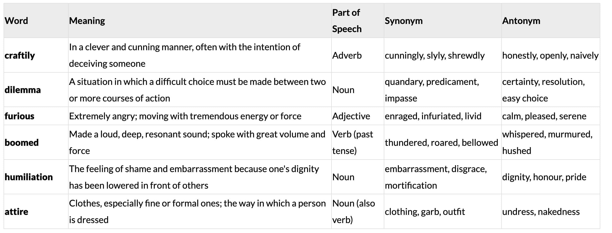 - Emotionally charged vocabulary: Words like “anguish,” “stumbled,” “staggered,” “dashed in the dirt,” and “beaming” place the reader inside the scene.
