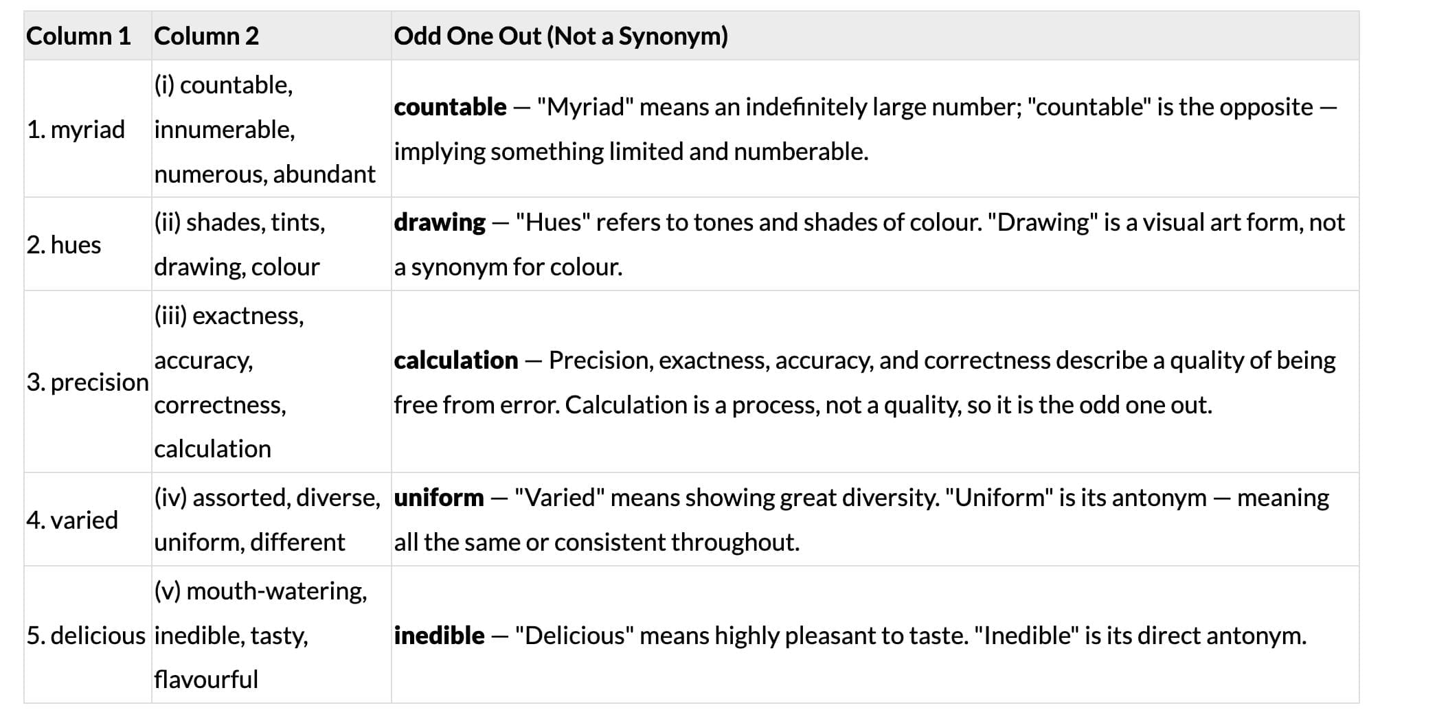 III. Choose the correct adjectives from those given in the box for the underlined words given in the sentences below. Ensure you do not use the same adjective twice.