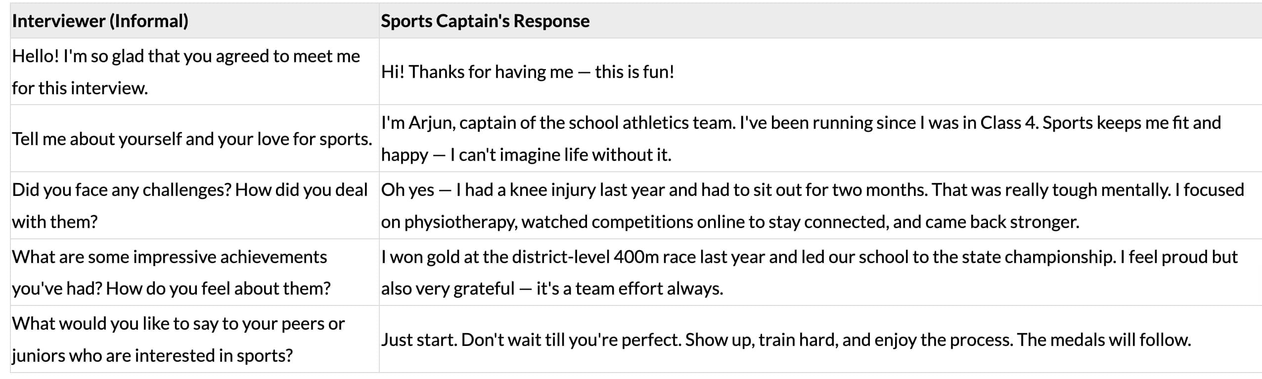 Student A: It’s my belief that we need to do much more. Most people know about the Olympics and even the Paralympics, but Special Olympics is far less discussed. We could create awareness by inviting Special Olympics athletes to our school, organising inclusive sports days, and sharing stories like the one in the poem.